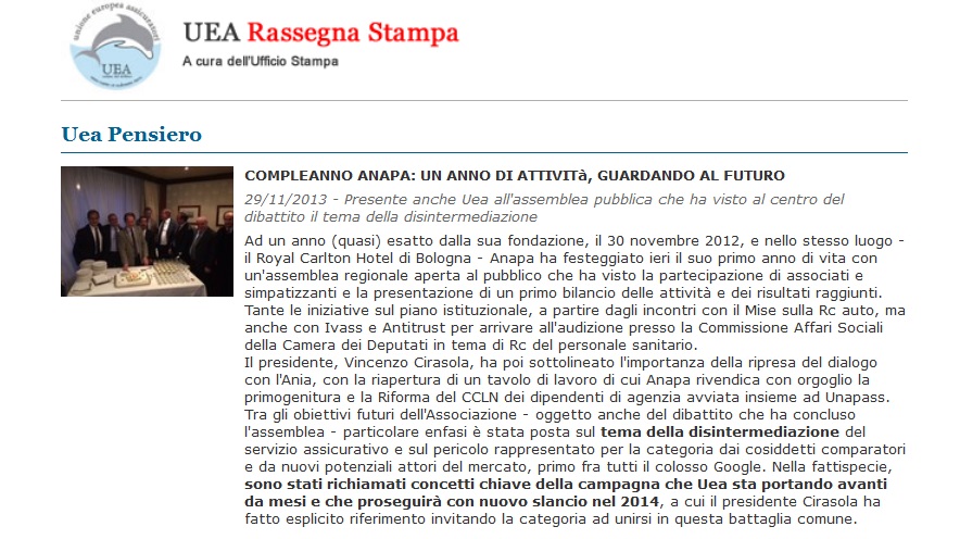 RassegnaStampa UEA- Compleanno Anapa: un anno di attività, guardando al Futuro!