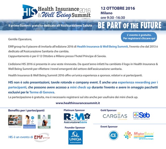Health Insurance & Well Being Summit (HIS), l’evento che dal 2013 è dedicato alla Assicurazione Sanitaria che cambia.
