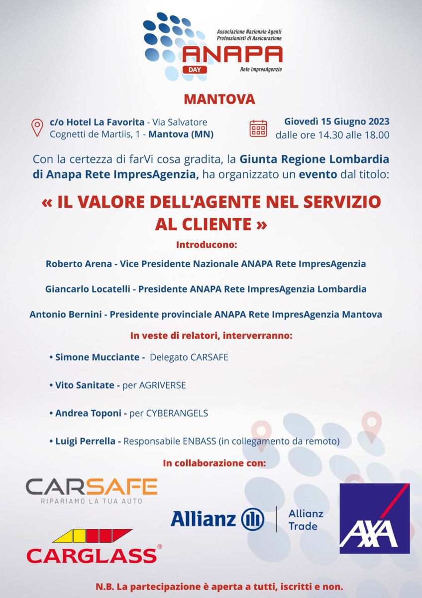 SAVE THE DATE 15-06-23 Anapa Day Mantova “IL VALORE DELL’AGENTE NEL SERVIZIO AL CLIENTE”