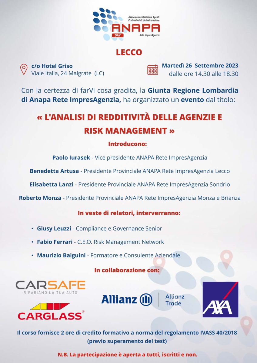 SAVE THE DATE 26-09-23 Anapa Day Lecco – L’analisi di Redditività delle Agenzie e Risk Management