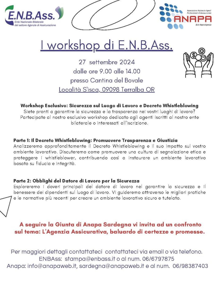 SAVE THE DATE 27/09/2024 – Workshop E.N.B.Ass. e convegno Anapa: “L’Agenzia Assicurativa, baluardo di certezze e promesse”