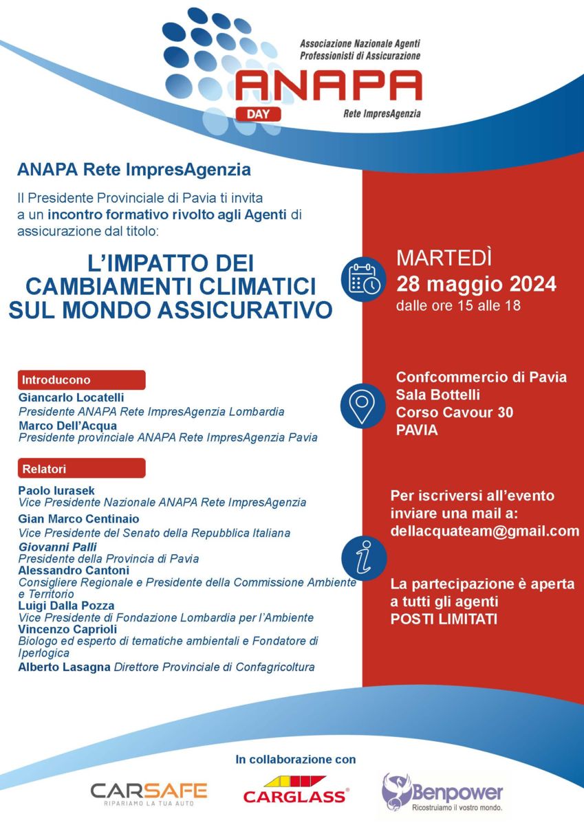 SAVE THE DATE 28-05-24 Anapa Day Pavia – L’IMPATTO DEI CAMBIAMENTI CLIMATICI SUL MONDO ASSICURATIVO